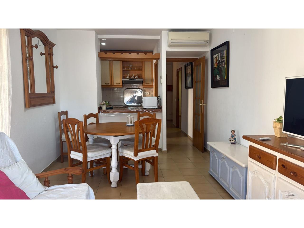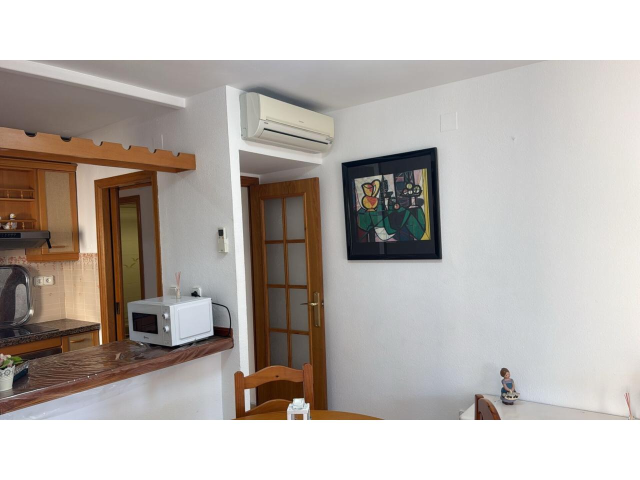 DescripciónApartamento situado en el corazón de Salou, en zona peatonal junto al parque municipal de Salou y a tan sólo 200metros de la fuente Luminosa y Playa principal de Salou. El apartamento consta de recibidor de entrada, 1 dormitorio doble, 1 individual, baño, cocina independiente con galería, salón comedor y gran terraza esquinera acristalada. El edificio dispone de piscina comunitaria en la cubierta del edificio. Ubicación ideal por su proximidad a la playa, a restaurantes, comercios y zonas de ocio. Venga a visitarlo!